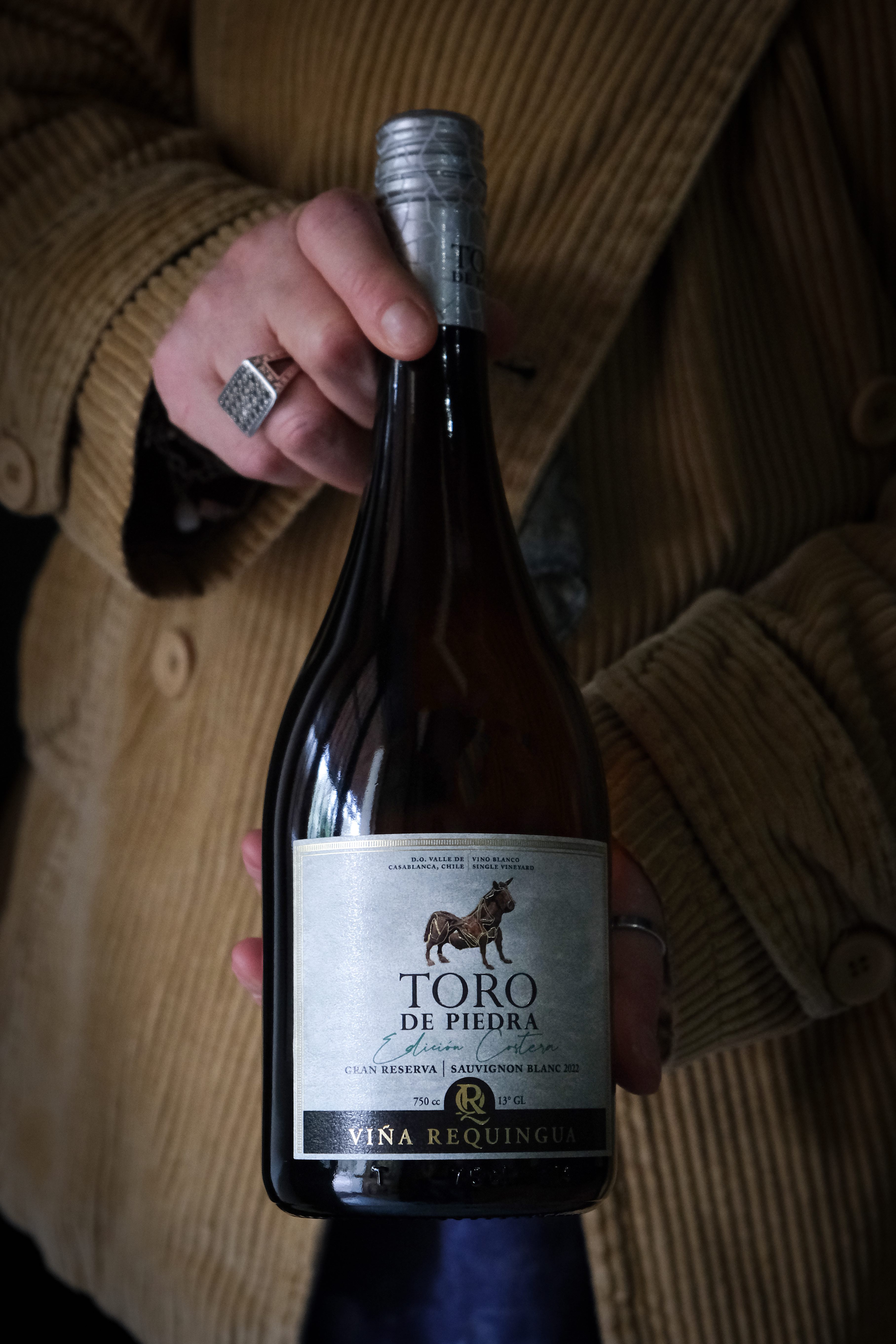Ideal para compartir en como aperitivo o en compañía de un fresco ceviche y mariscos crudos, Toro de Piedra, Gran Reserva Sauvignon Blanc Edición Costera proviene de Tapihue, Valle de Casablanca. De color amarillo palido con reflejos verdosos, en nariz es intenso a maracuya, pomelo, lima y hierbas frescas y su boca presenta con una acidez marcada en la entrada, perfil vertical con sensación y salina en el final, ideal para maridajes mediterráneos.
