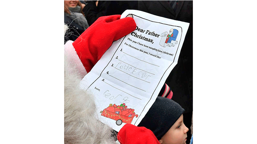 El bisnieto de la Reina Isabel solo quiere una cosa: un auto de policía. Y lo ha escrito a mano. El pequeño tenía la oportunidad de rellenar 5 alternativas y solo se ha decidido por una. Firmando la nota con un "Love, George" (Con amor, George).