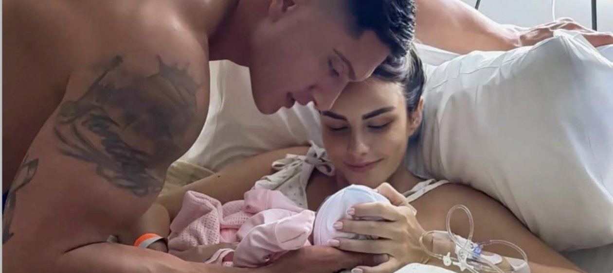 La pareja compartió una imagen desde la clínica, donde se ve a la cantante sosteniendo a la recién nacida, acompañada por el deportista.
