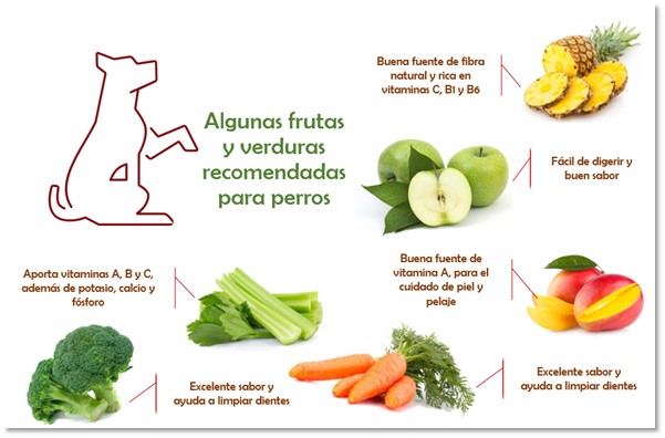 Milenko Ullrich, médico veterinario del Kennel Club de Chile (KCC), señala que "las frutas y verduras pueden complementar la dieta normal canina, aportando vitaminas, minerales, fibra natural y otros beneficios como la limpieza de dientes. Sin embargo, es importante cuidar las cantidades y ojalá no sobrepasar el 15% en relación con el alimento normal".